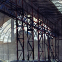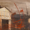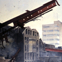 Onttakelde en verlaten machinehal van scheepswerf Gusto van het concern IHC gouache en krijt op papier 1983 Gemeente Archief Rotterdam, catalogusnr 1983-1662 (bestellen afbeelding zie 'bestellen')