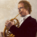 Portret van de hoornist Pieter Gouderjaan olieverf op paneel 1987 122 X 82 Pieter Gouderjaan