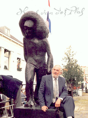 Oude Sluis, Schiedam 1987 in opdracht van Zakkendragersgilde Schiedam Cement op ijzeren geraamte. Zwartgroen patiné.…